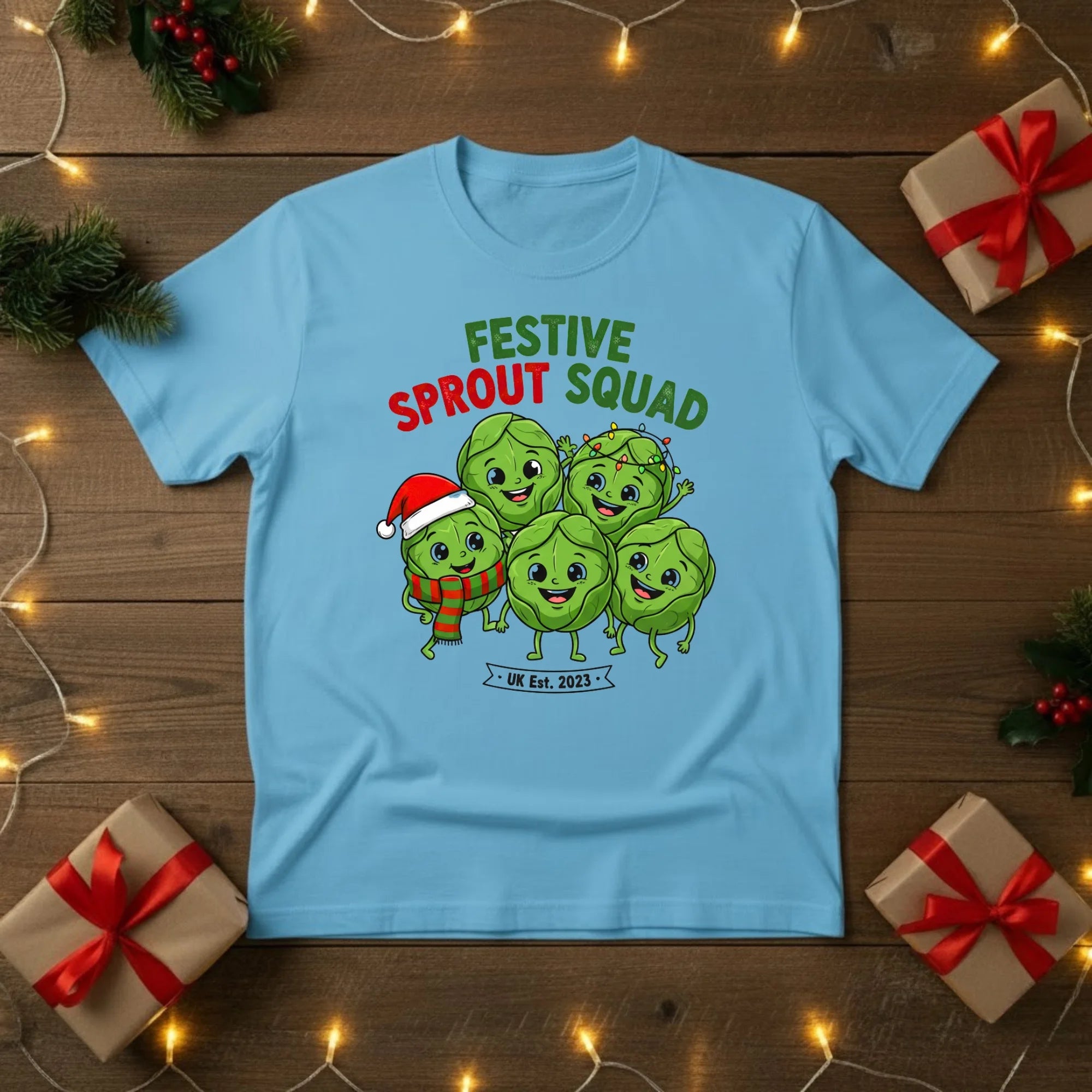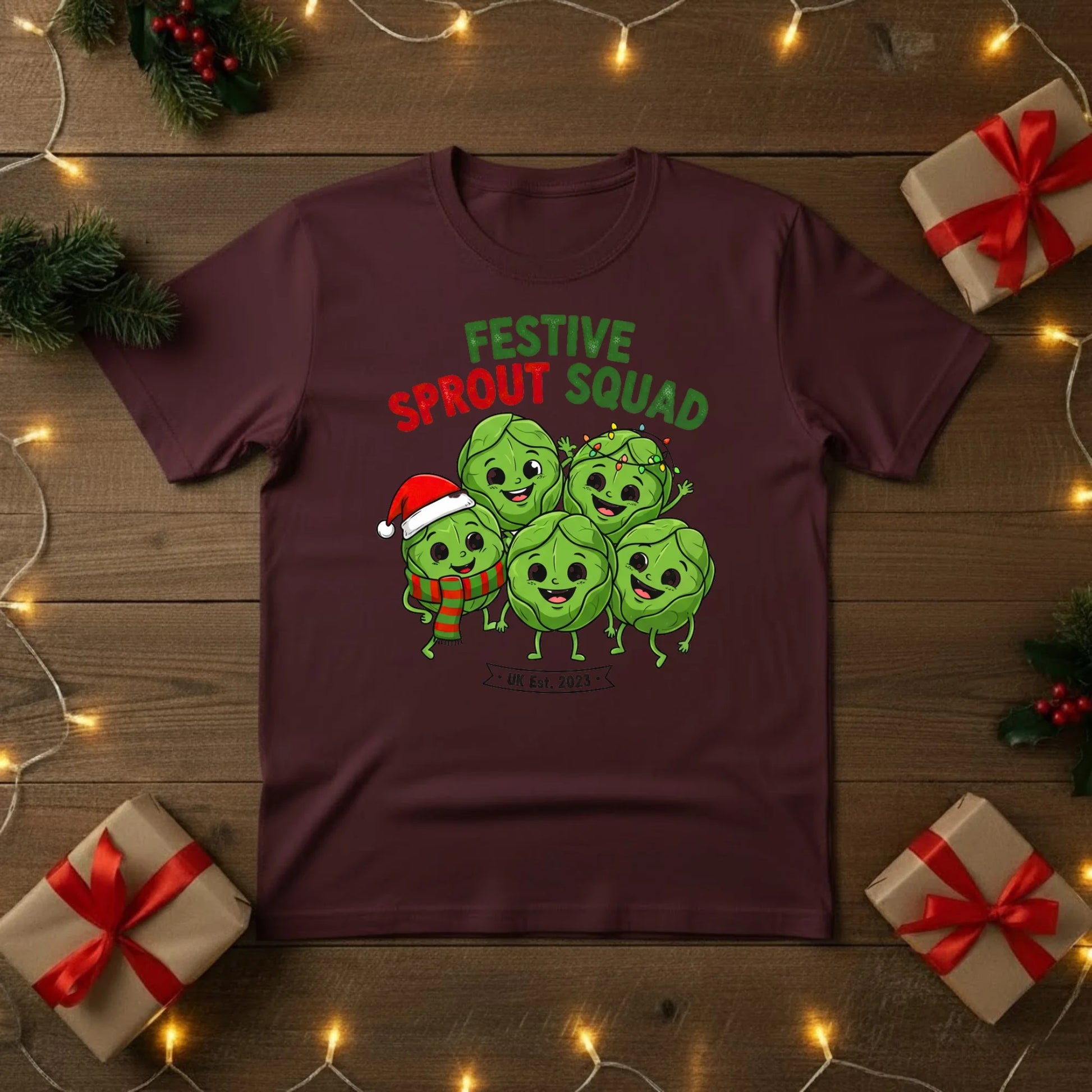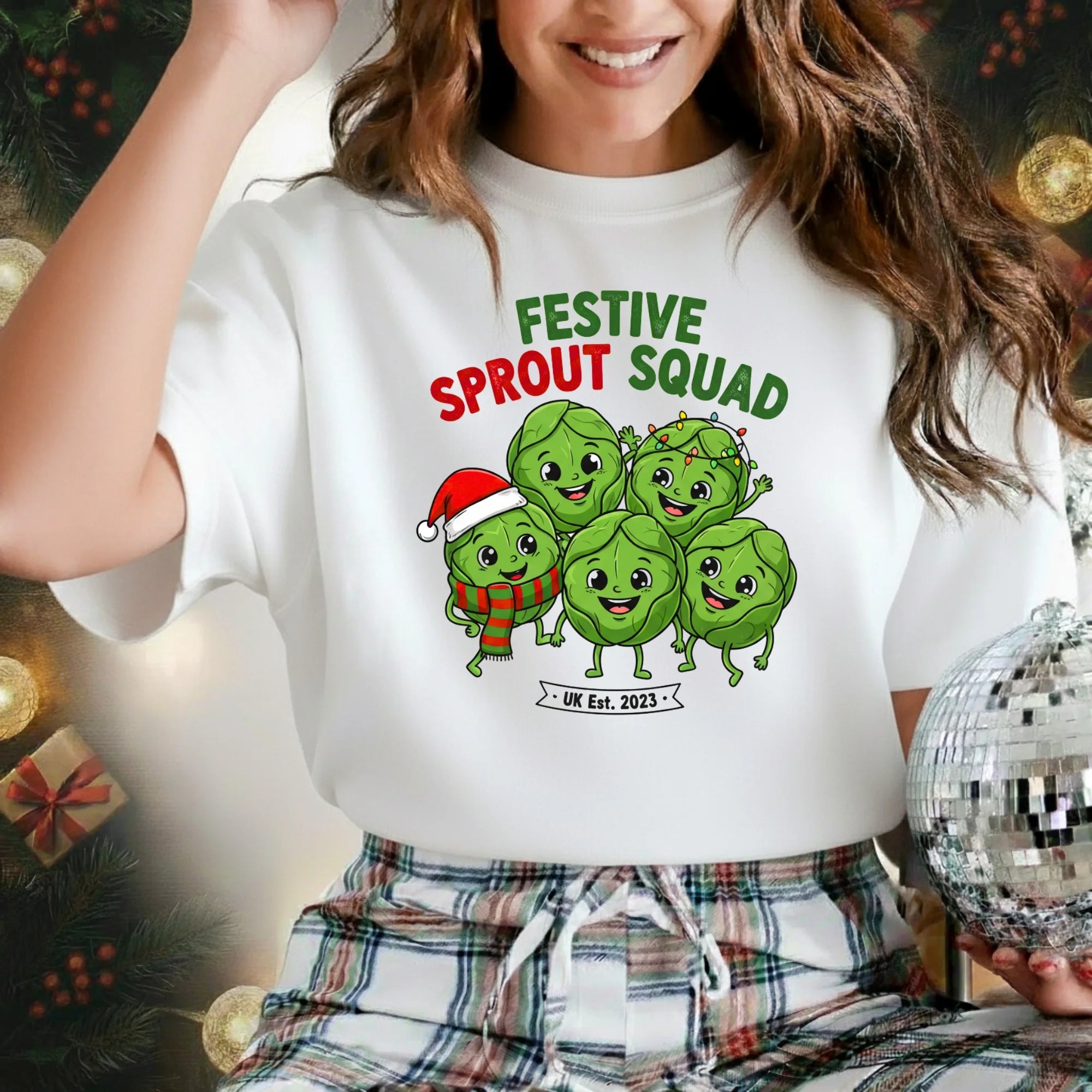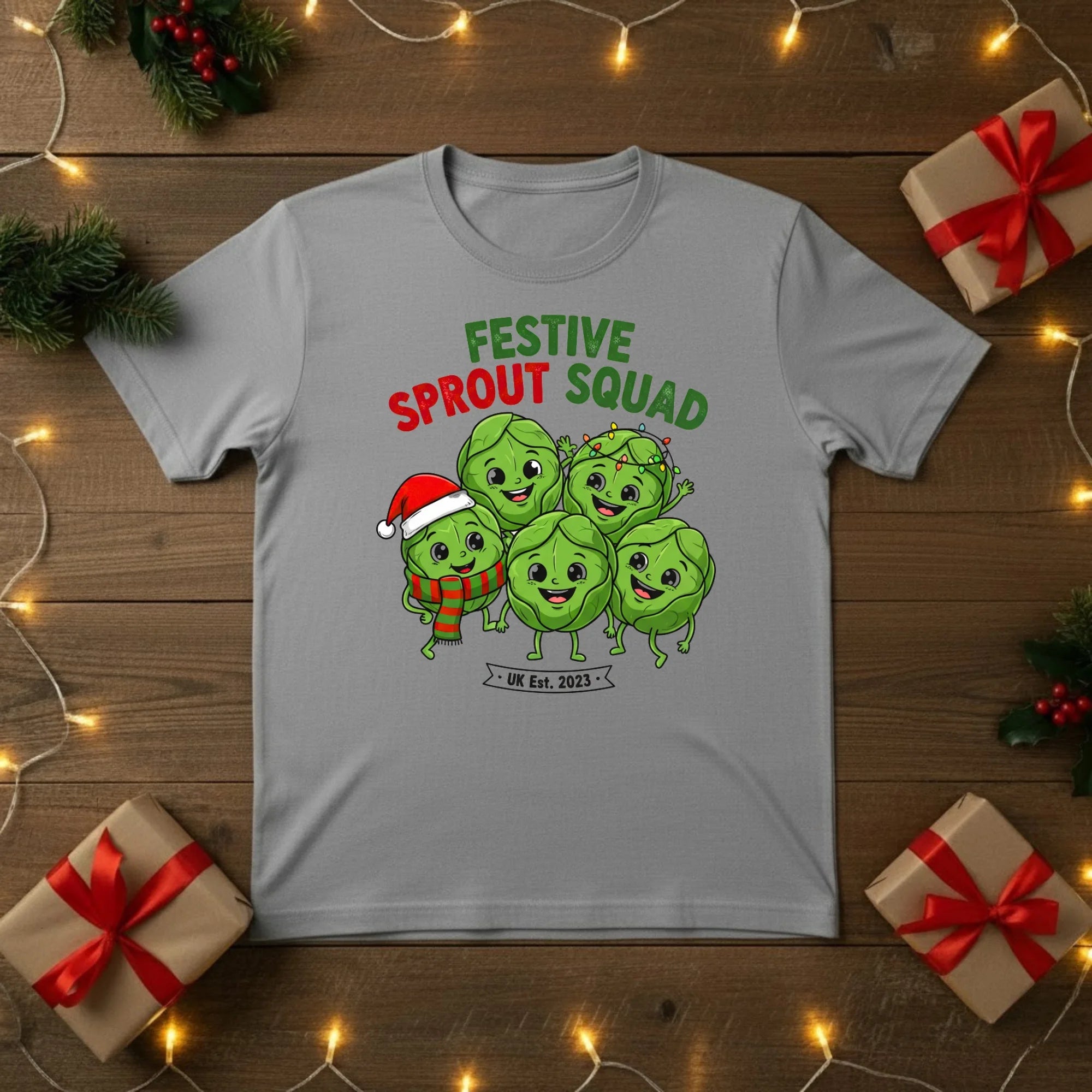 Join the Festive Sprout Squad and celebrate Christmas with a bit of cheeky British humour! This cosy t-shirt features a group of merry Brussels sprouts, bringing a playful twist to everyone’s favourite (or not-so-favourite) Christmas dinner classic.