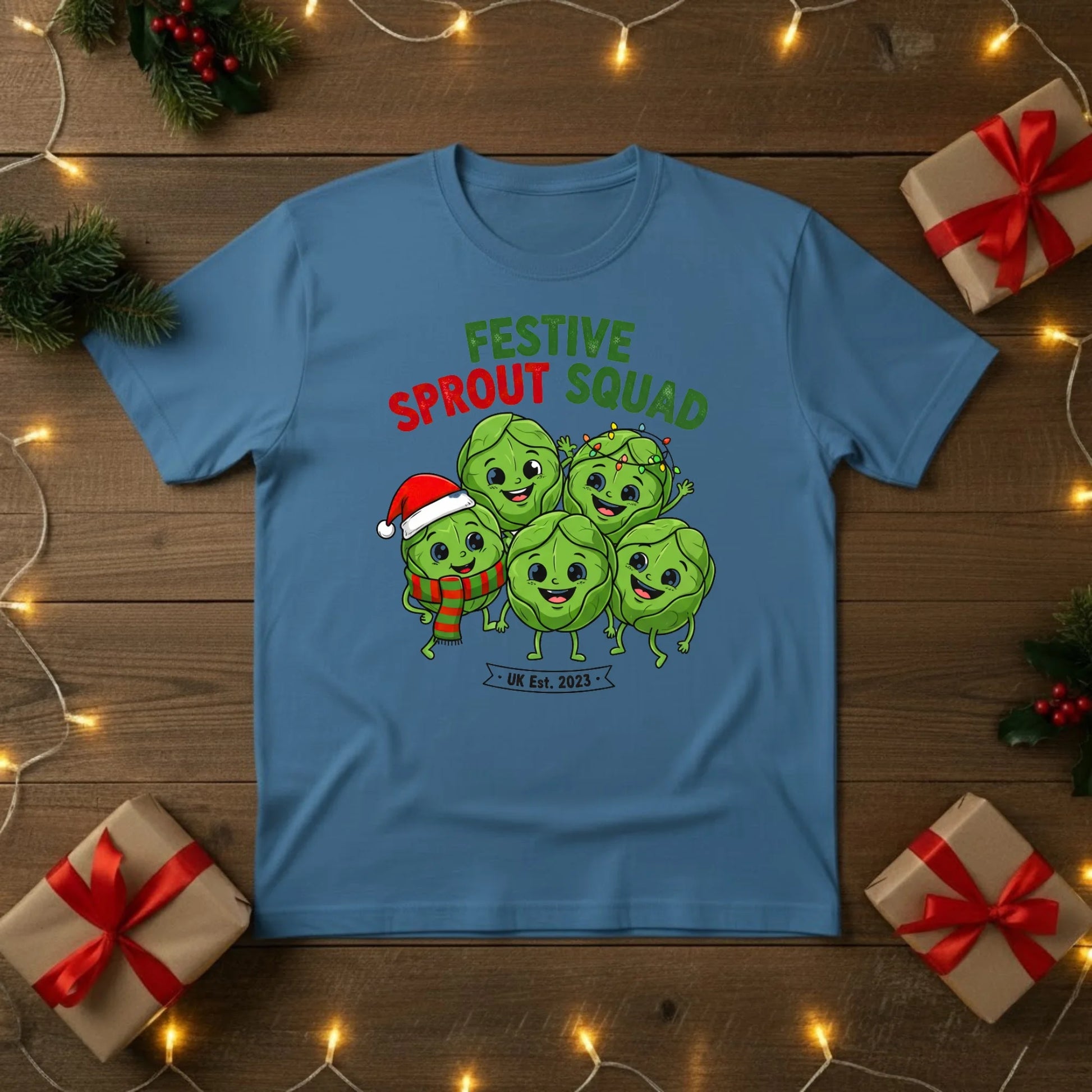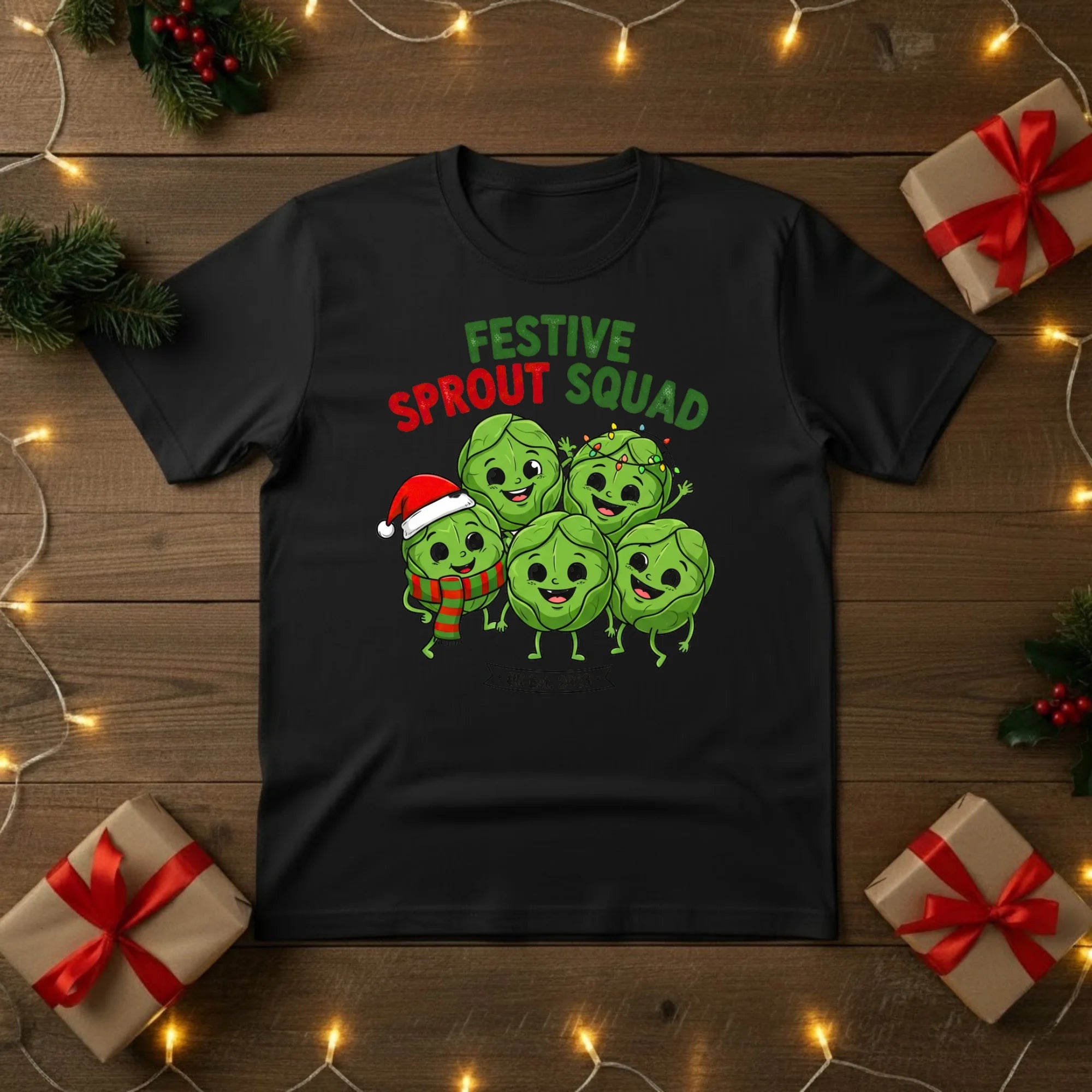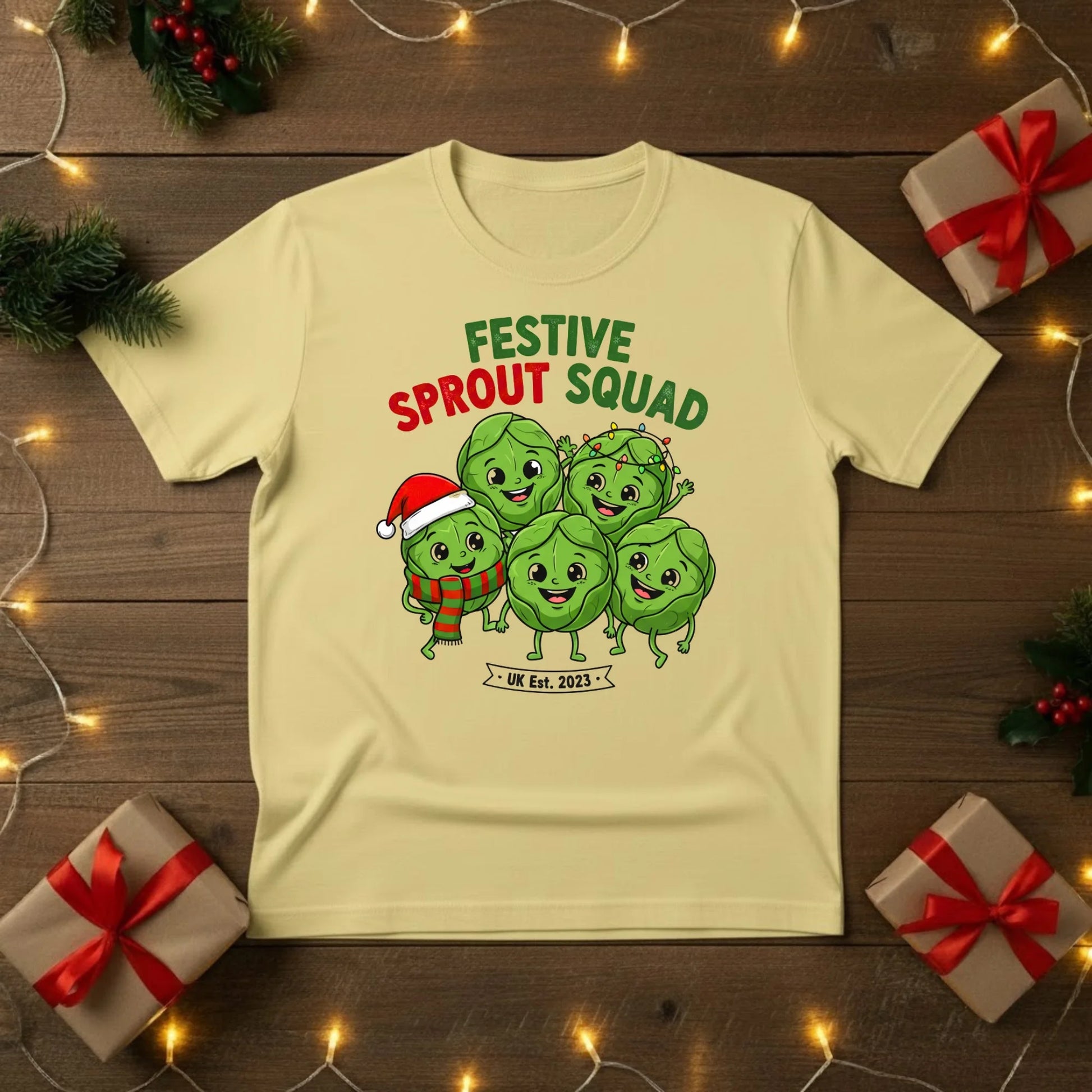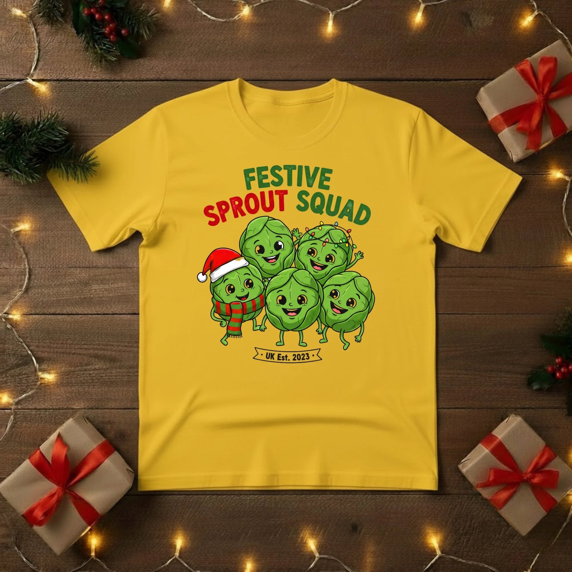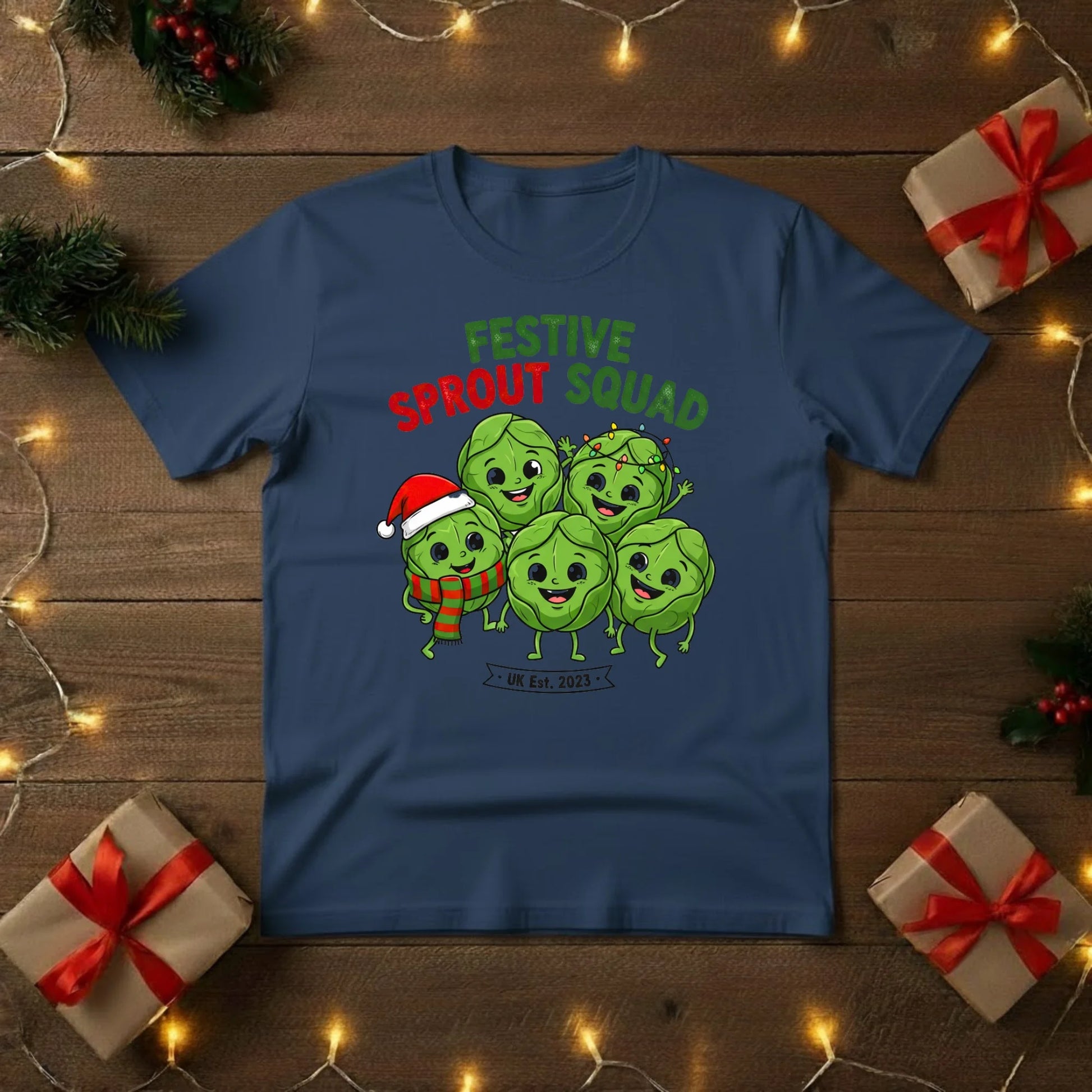 Join the Festive Sprout Squad and celebrate Christmas with a bit of cheeky British humour! This cosy t-shirt features a group of merry Brussels sprouts, bringing a playful twist to everyone’s favourite (or not-so-favourite) Christmas dinner classic.