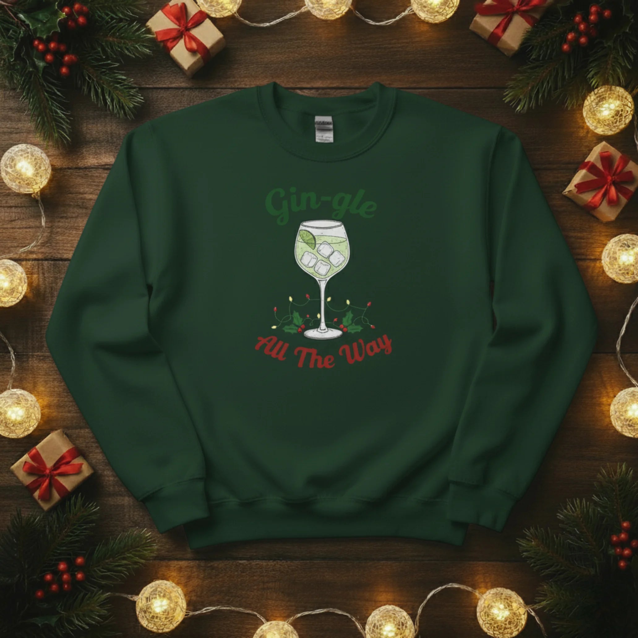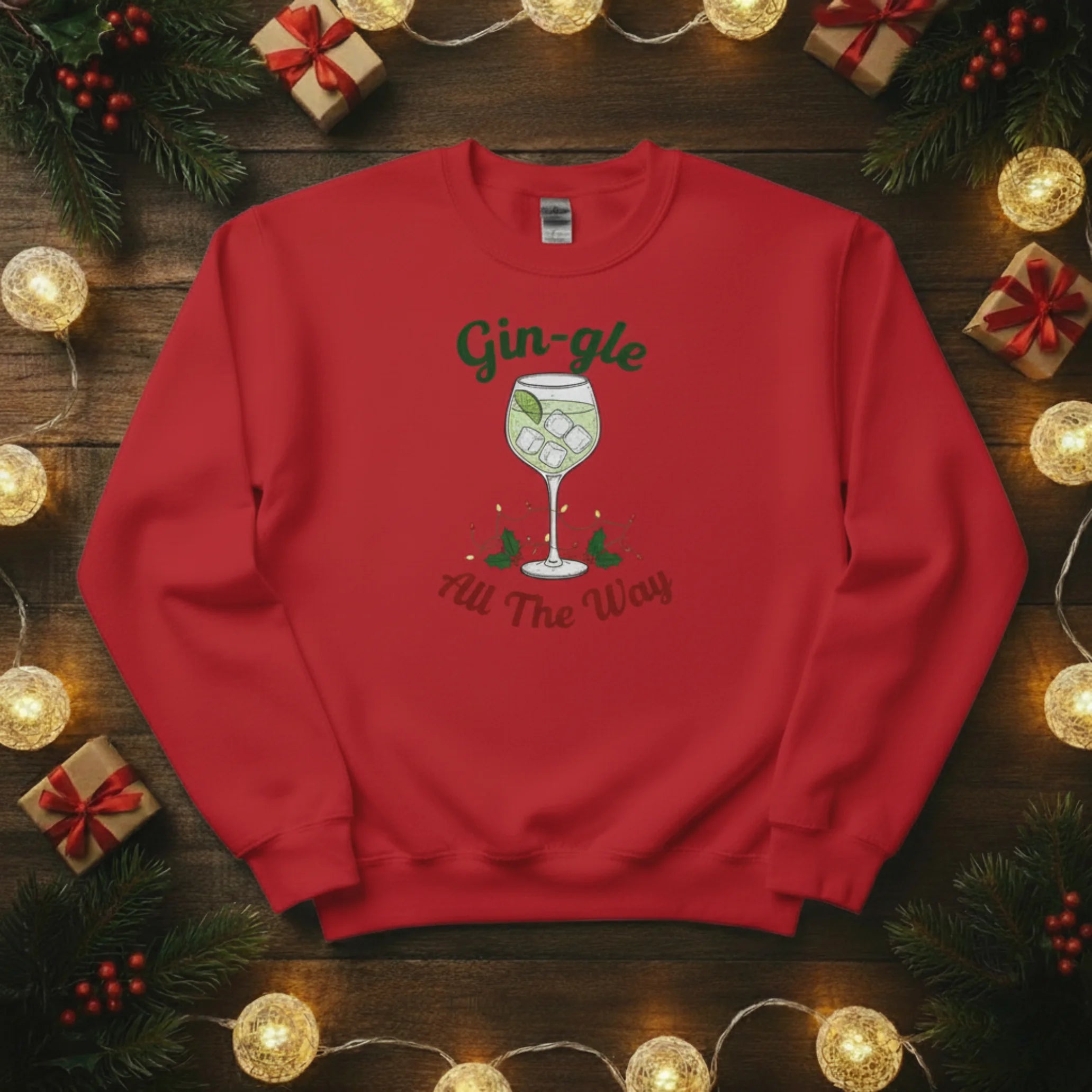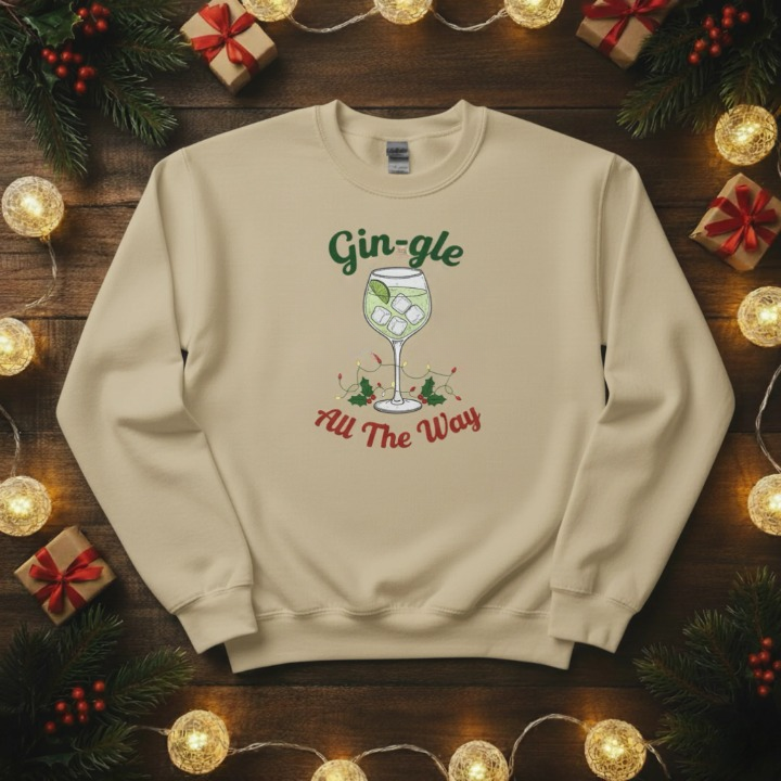 Raise a glass to the festive season with our Gin-gle All The Way Christmas sweatshirt — the perfect pick for gin lovers who enjoy a good laugh and a cosy jumper! This witty and playful design captures the spirit of Christmas with a cheeky twist, making it ideal for parties, gatherings, or relaxed evenings by the fire. It’s the ultimate festive essential for those who like their holidays served with a splash of humour.