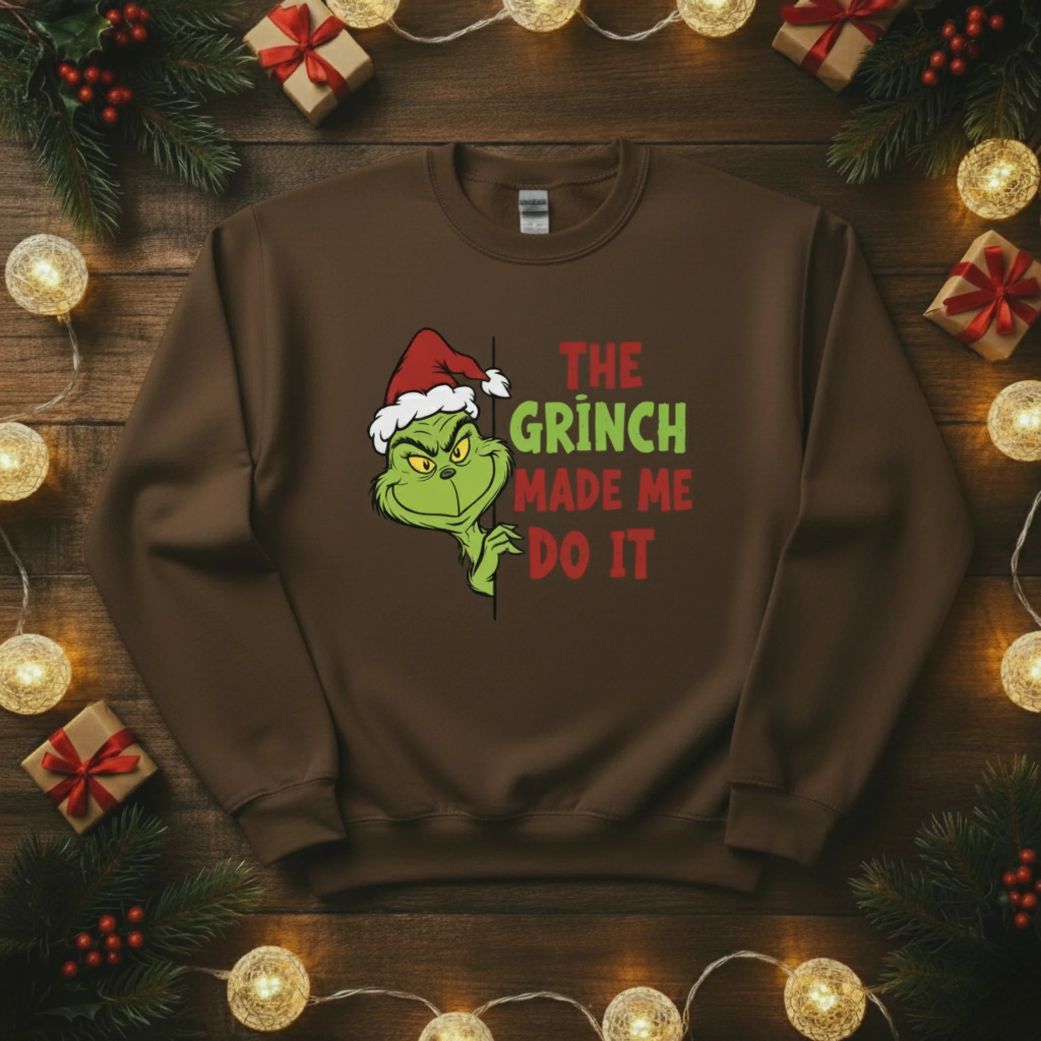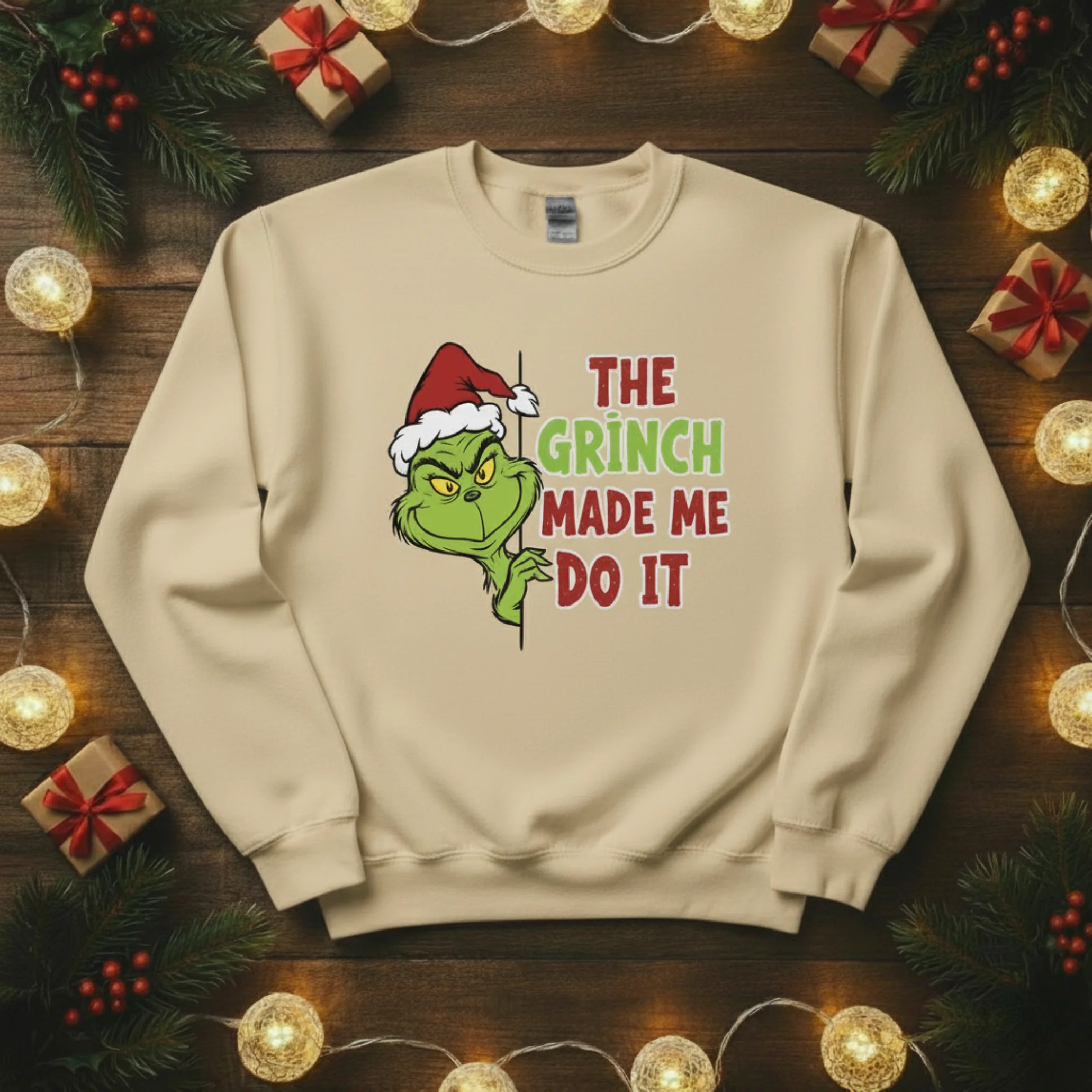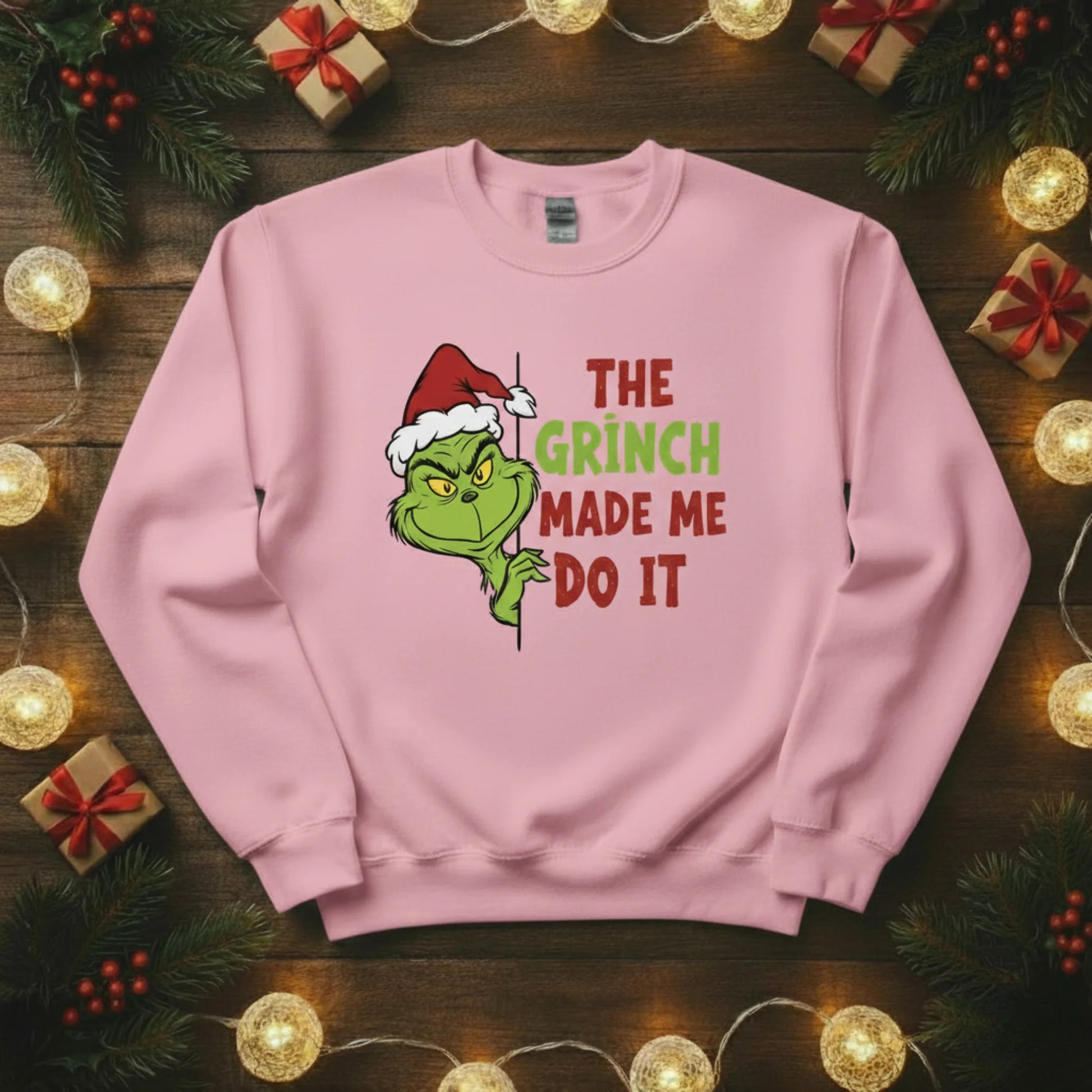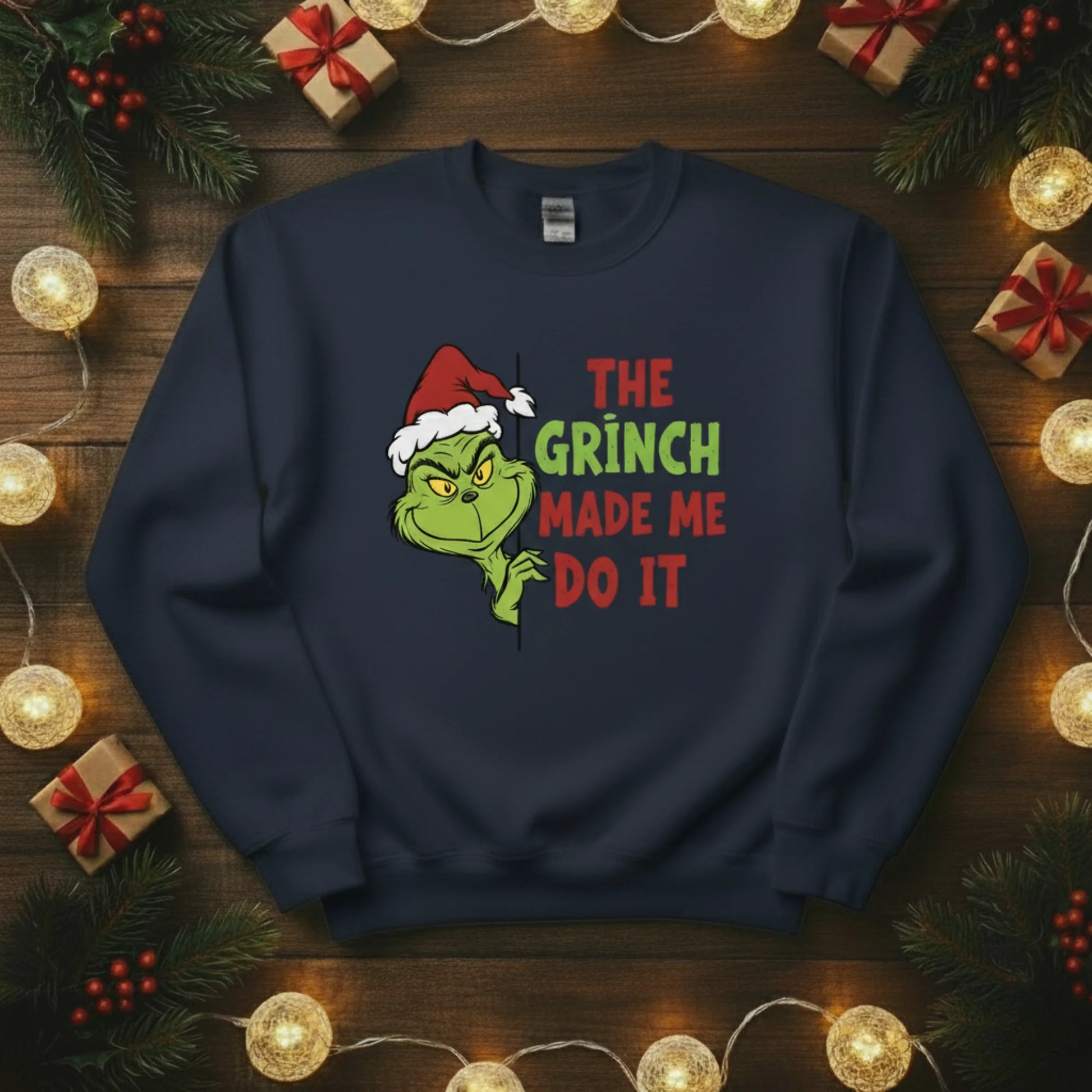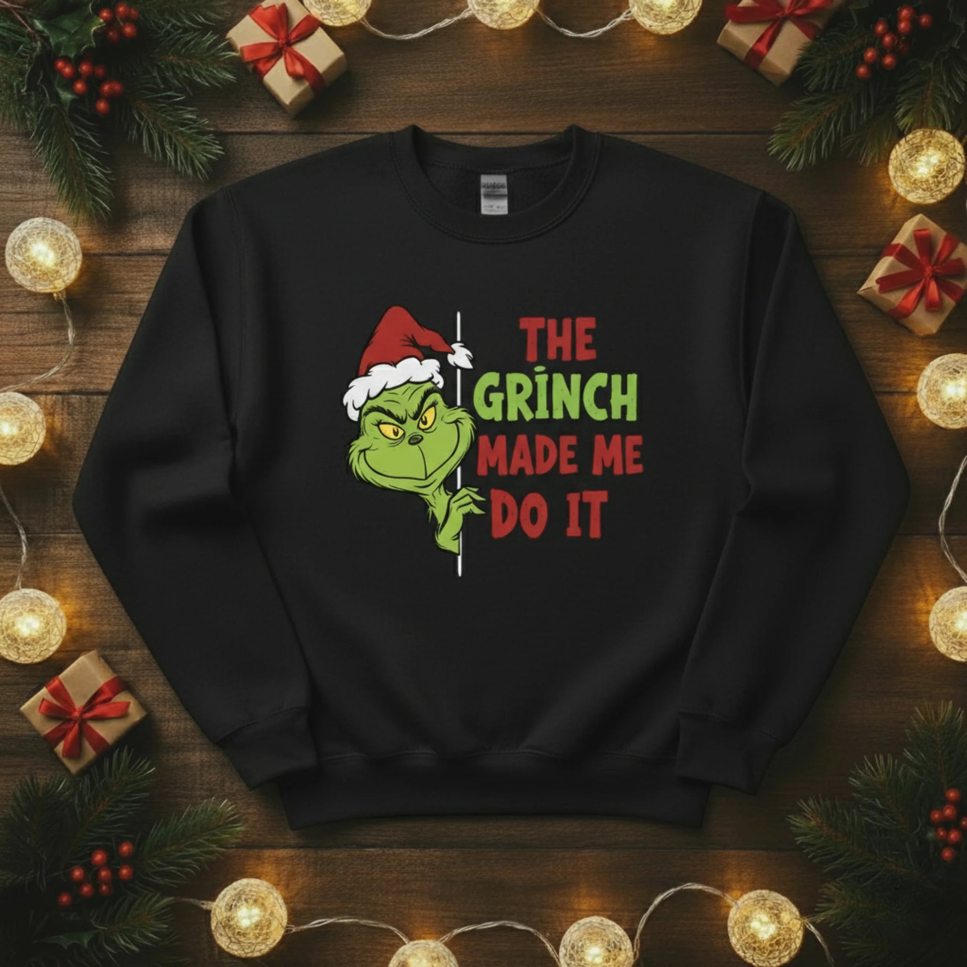 Add a cheeky twist to your festive wardrobe with The Grinch Made Me Do It Christmas sweatshirt! This fun and playful design captures the mischievous side of the holidays — perfect for anyone who loves a bit of humour with their Christmas spirit. Whether you’re heading to a festive get-together, wrapping presents, or enjoying a lazy winter day at home, this jumper is guaranteed to turn heads and spark smiles.